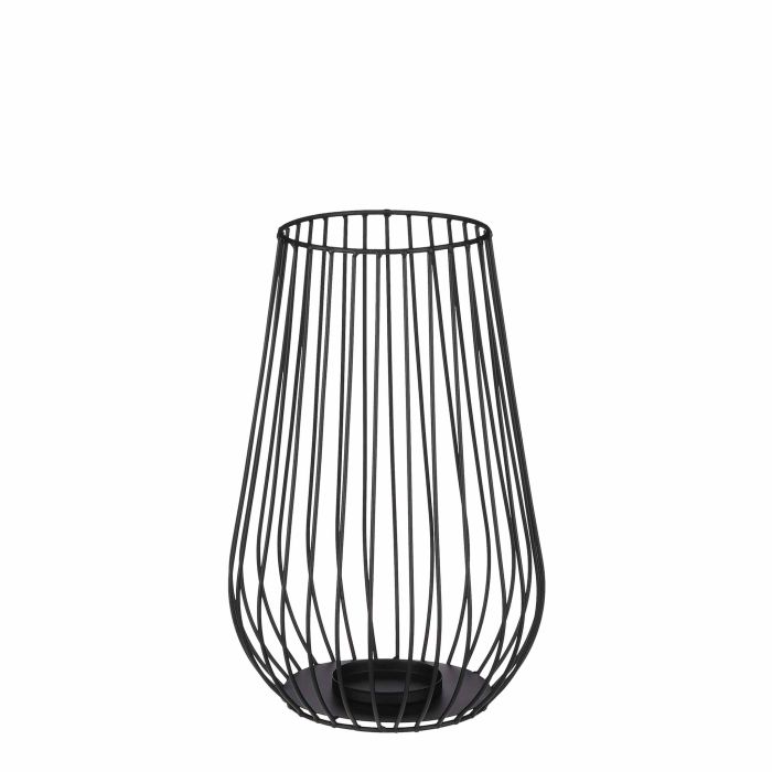 Porto lanterne sort. Stor sort lanterne til et enkelt lys. Lanternen har en masse lameller, der giver et fint lys hen over stuegulvet eller på terrassen.