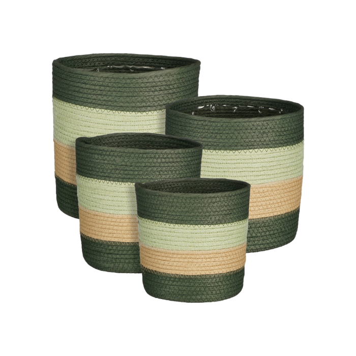 Rachel kurvesæt med 4 kurve i forskellige størrelser alle foret med plast, så de også kan bruges som urtepotter. Kurvene er fremstillet af plantefiber fra majsblade. Funktionelle og med et naturligt touch til boligindretningen.