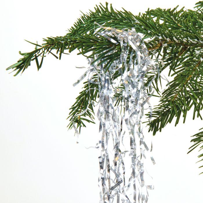 Reflexlametta sølvfarvet. Reflexlametta sølvfarvet i tråde på 2,5 mm. Posen indeholder 42 g.