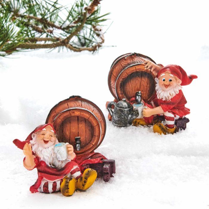 Skovnisse ved vintønde er ved at fylde kruset til aftenens store fest. Findes i 2 varianter, hvor skovnisserne sidder lide forskelligt ved siden af tønden.