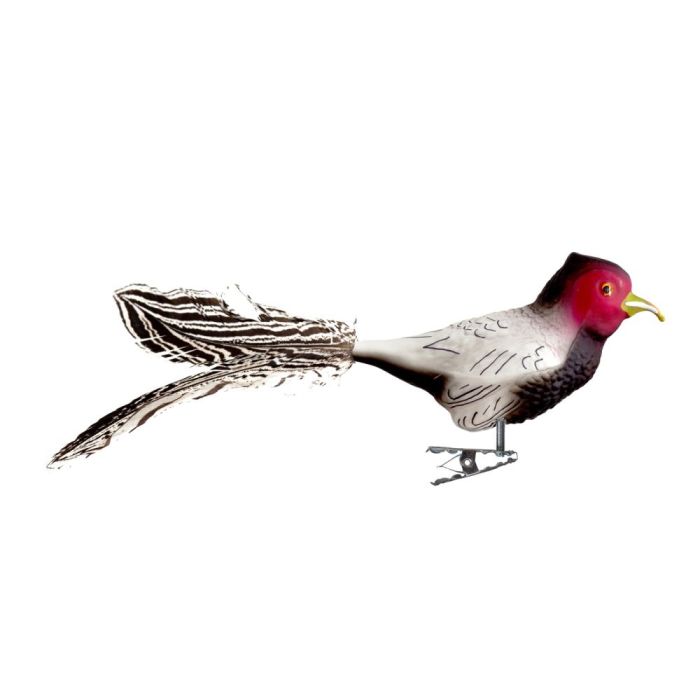 Fasanens lange halefjer stammer fra en ægte fasan og skaber et let, svajende udtryk, som gør figuren ekstra dekorativ på juletræet. Med en længde på 24 centimeter er den et markant blikfang, der samtidig bevarer elegancen i sin form.