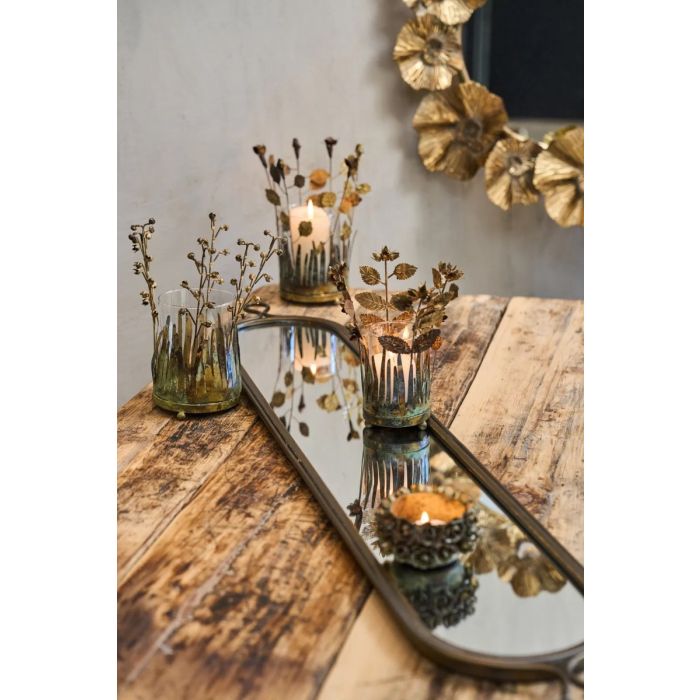 Denne lange spejlbakke fra Speedtsberg er en smuk og funktionel dekoration, der bringer elegance ind i hjemmet. Den lange form og de antikkobberfarvede kanter giver bakken et sofistikeret udtryk, mens de fine håndtag tilfører et let og harmonisk finish. Med sine imponerende mål på 124 centimeter i længden og 21 centimeter i bredden er bakken særligt velegnet som centerpiece på lange borde, vindueskarme eller kommoder, hvor den skaber en dekorativ base for lys, planter eller udvalgt boligtilbehør. Spejloverfladen reflekterer lyset på en rolig og stemningsskabende måde, hvilket gør den ideel til både hverdagsindretning og sæsonpynt. Brug den som et samlende element i din boligstil, hvor den kan fremhæve alt fra glasvaser til naturmaterialer og små stilleben. En rummelig og dekorativ spejlbakke i tidløst design, der inviterer til kreativ indretning og giver hjemmet et gennemtænkt, stilfuldt udtryk.