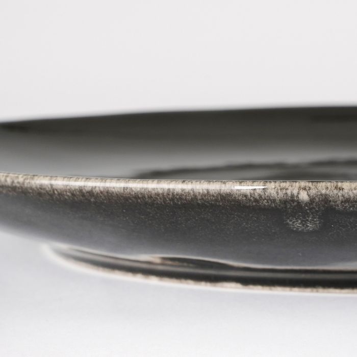 Tabo stentøj middagstallerken sort. Lækker stentøjsserie i flot, sort farve med masser af farvespil i glasuren. Alle produkter er med unikke, organiske former. Serien består af skåle, tallerkner og krus.