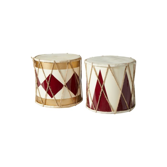 Dekorative trommer med ægte gedeskind til fx pynt under juletræet eller leg fra Speedtsberg. Nostalgisk julepynt i smukt design. Trommerne fås i flere størrelser og i to varianter.