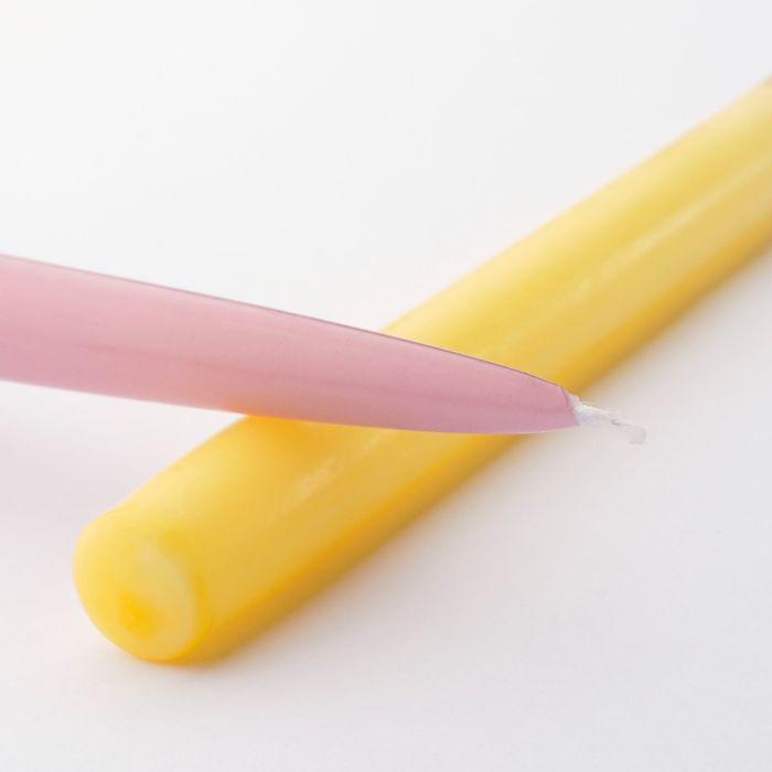 Forårslette og elegante kertelys i smukke påskefarver, der passer perfekt til sæsonens dekorationer. De tynde lys er tofarvede i en blid kombination af lysegul og lyserød, som giver et let, lyst og indbydende udtryk på bordet.