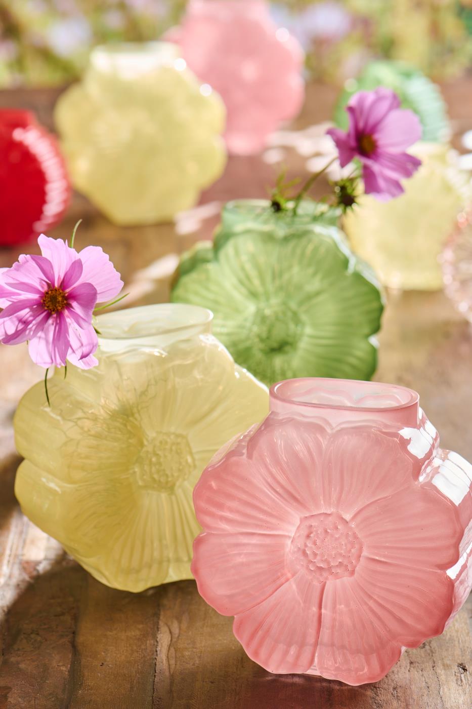 Daisy vasen findes i flere farver, så man kan vælge den nuance der passer bedst ind i indretningen eller kombinere flere for et farverigt og livligt udtryk.