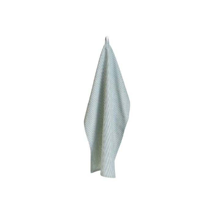 Viskestykke med tynde lyseblå og hvide striber i god kvalitet fra Speedtsberg. Et fint viskestykke skaber stemning i køkkenet og kan også anvendes ved servering.